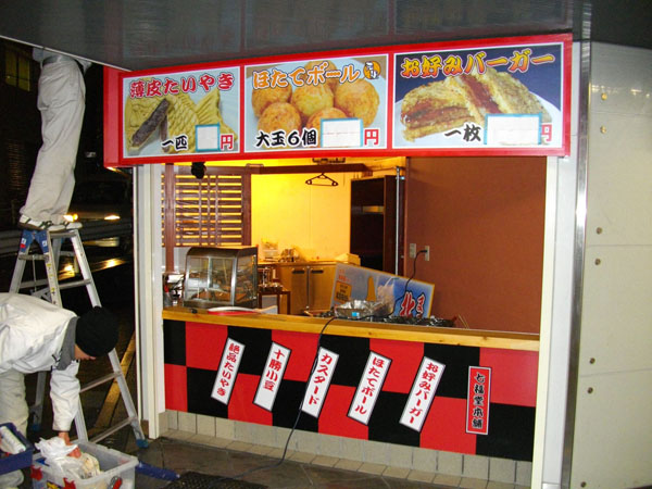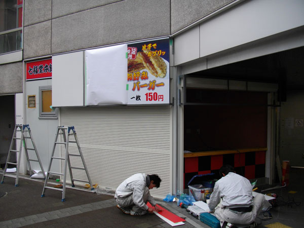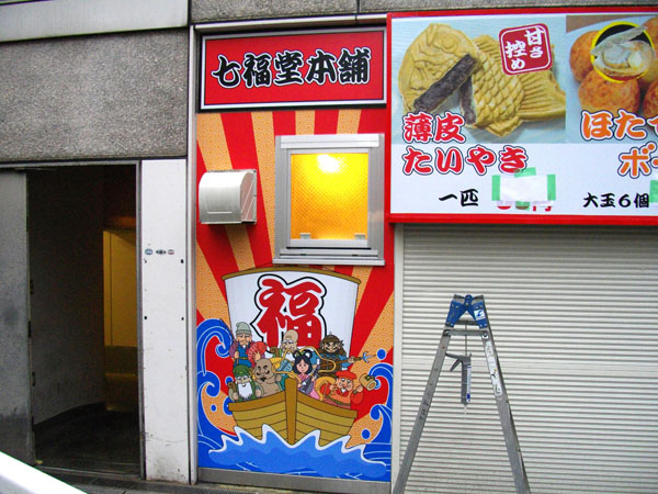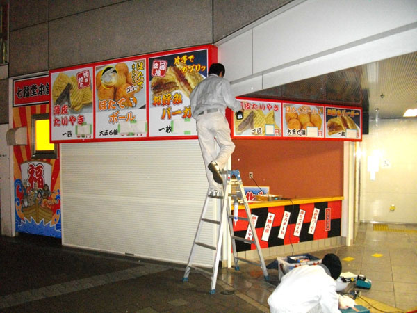 お馴染みの七福堂本舗さまの看板取付工事です。オープンまで時間が無く、突貫工事をさせていただきました。以下、できるまでの写真をご覧ください。 |