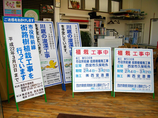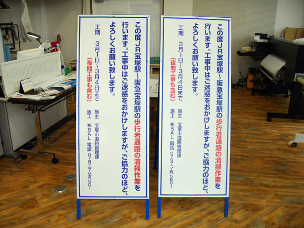 特注の工事予定の看板です。お急ぎで即日仕上げでご対応しました。