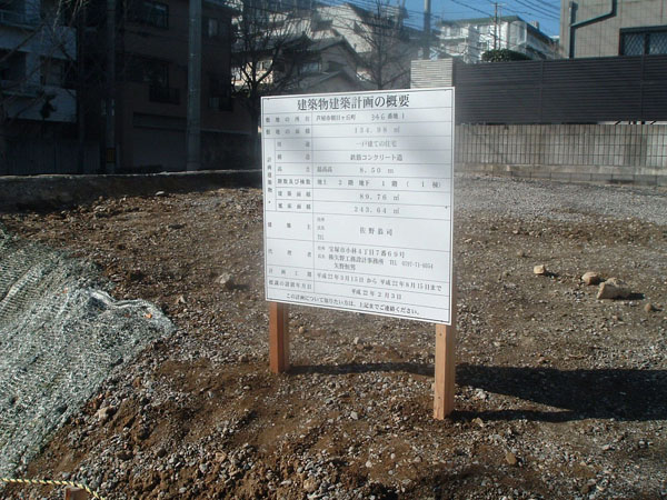 芦屋市内の建設予定地表示です。ご近所さまよりご注文いただきました。 |