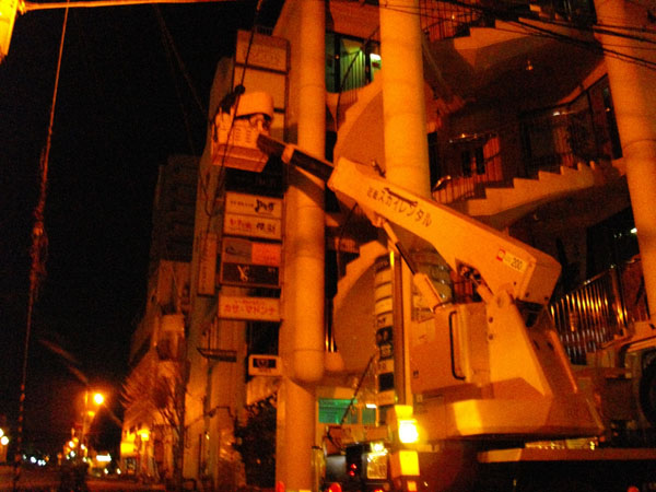 阪急西宮北口駅2分の位置にオープンされる力石さま。高いところにある看板を貼り替えるため、早朝に高所作業車を使っての貼り替えとなりました。当日は小雪の舞い散る寒さで、難しい作業となりました。翌日は少しおだやかな温度になり、作業を完了させる事ができました。 ありがとうございました。 |