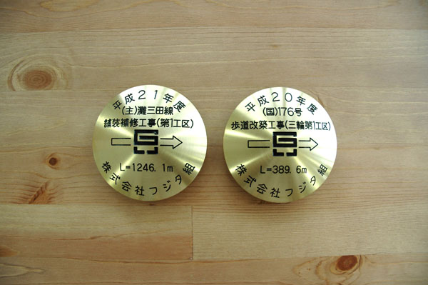 舗装工事が完成した際に道路に埋め込むしるしです。 |