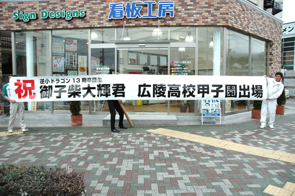 喜ばしい横断幕です。甲子園、頑張ってください!! |