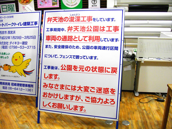 武庫川沿いの道路についている「歓迎」看板です。閉園後も「ファミリーランド」の表示が残っていましたが、宝塚市役所様よりご依頼があり「ガーデンフィールズ」さまに書き換えました。ついでに錆びていた背面や支柱も塗装しています。 |
