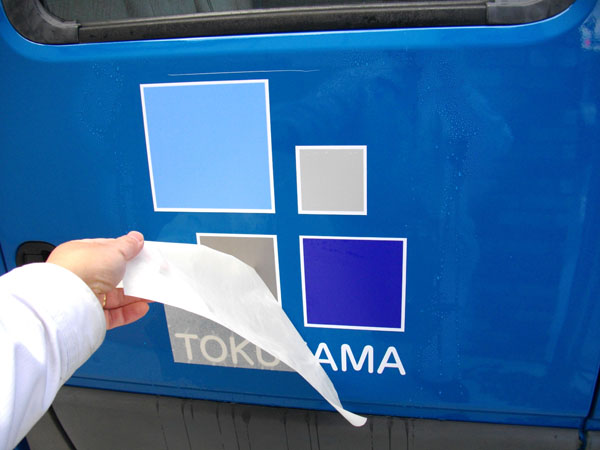 営業車につける社名ステッカーです。耐候性の塩ビシートで作成しました。 |