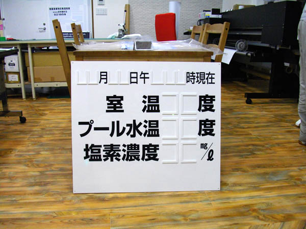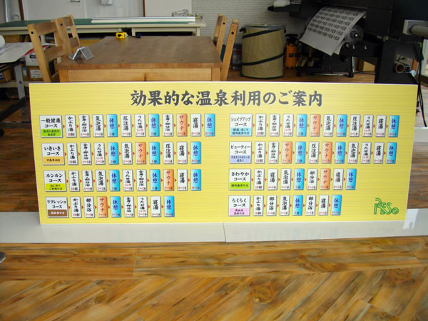 リゾ鳴尾浜の天然温泉入口に掲げるご案内です。既存の鉄板に塩ビシートを貼り付けました。 |