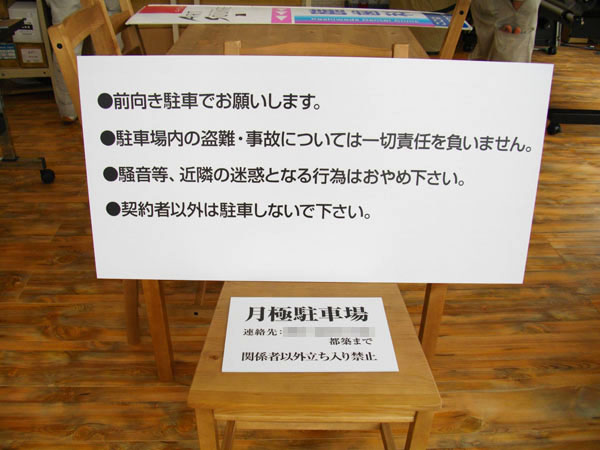 一般的には赤文字で作る場合が多いのですが、今回のご依頼は黒文字でとのこと。月極駐車場はご近所の方だけが対象で、時々「目立ちすぎない看板」を求められることがあります。 |