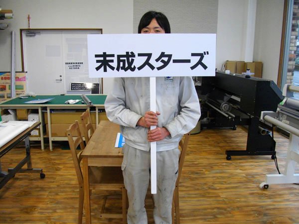 野球の入場の際に使うプラカードです。少し文字が下に下がっていますが、上に何か追加されるそうです。