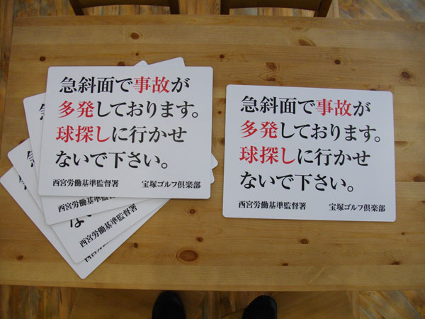 キャディさんに取りに行かせてはならないという看板です。古くなったので盤面の作り変えです。 |