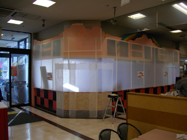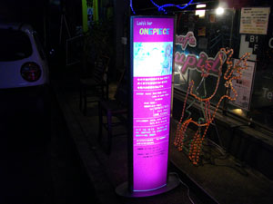 大阪鶴橋の商店街にオープンされた店の看板です。既存のアルミ複合板の上に塩ビ印刷を貼りました。 |