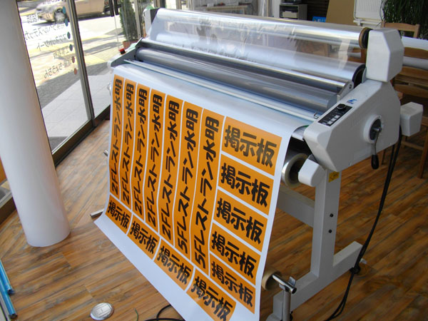 これはラミネートマシンに通す際の写真です。印刷したものは、このようにして表面を加工します。 |