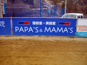 球場のフェンスにつける広告です。テントにカッティング文字を貼りました。 |