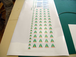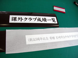 ターポリンを使った懸垂幕です。小学校の壁に飾るもので、幅は900mmですが、長さはその10倍、9メートルもあります。 |