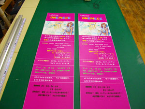 電飾看板のアクリルをお持込みいただき、インクジェット塩ビ印刷を貼りました。取付け後を見せていただきましたが、ご満足いただきました。