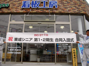 入口を飾る横断幕です。フェンスに取り付けられるそうです。 |