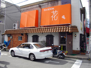 ご近所の喫茶店「花」様のテントです。先日の強風で飛んでしまい、新調しました。 |
