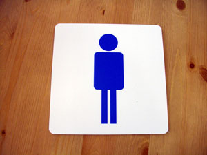 六甲山の施設にあるトイレサインです。廊下から見えにくいので、増設されたいとのこと。アルミ複合板で作りました。 |
