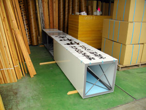 | 分割した状態です。鉄骨を新調し、アルミ複合板を貼っています。 |