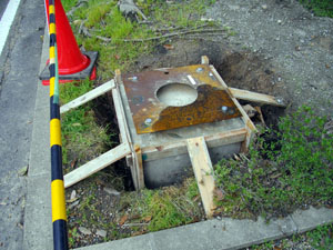 特注の工事看板です。「この先」の後には○○mと入ります。 |