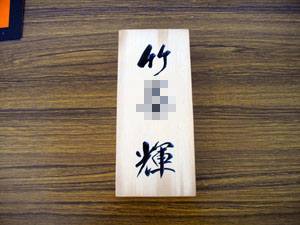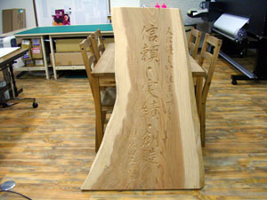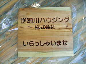 弊社の彫刻機を使った表札です。墨で書かれていたものを表面を削り、掘り込みました。ご注文ありがとうございました。 |