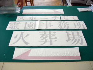 スポニチ霊園のカッティングシートです。以前と同じようにということで、矢印の形も以前と全く同じにしています。 |