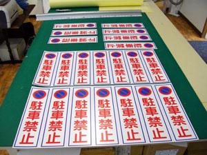 駐車場の看板です。アルミ複合板に塩ビシートを貼りました。 |