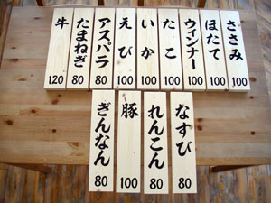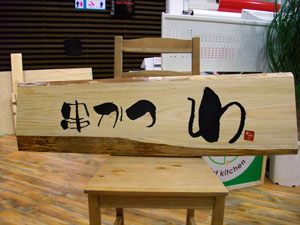 尼崎の串かつ「わ」さまからのご依頼です。木を切断し、にカッティングシートを貼りました。カッティングシートなので、後で修正することも可能です。 |
